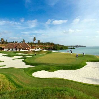 The makuti roofs and glowing Arabic towers of the luxurious Sea Cliff Resort and Spa, on a cliff overlooking the Indian Ocean, forms an exotic backdrop for travellers looking forward to escaping to the tropical beauty of East Africa. Nestling on the Northern-West coast of Zanzibar, just twenty-five minutes from the historical magic of Stone Town, visitors to the Sea Cliff are known to start relaxing as soon as they land in this lap of luxury. The natural colour scheme of cream and gold is complimented by antique furniture that reflects the ancient history of the island. Seacliff has the only golf course on the island of Zanzibar.