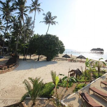 The Paradise Beach Hotel Resort is located between Chwaka and Uroa, in a village named Marumbi, one of the tourist enclaves of Zanzibar, and just 35km from the capital, Stone Town and the international airport. This holiday resort boasts spacious grounds set amidst palm trees, 700m of sea front, two swimming pools, a beach-bar, pizzeria and a barbeque restaurant. The jetty bar makes for breath taking photos particularly at sunrise and when the tide is out, the same jetty, with a swim platform, allows for easy access to the sea between half and high tide.